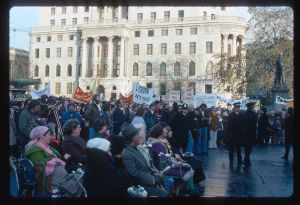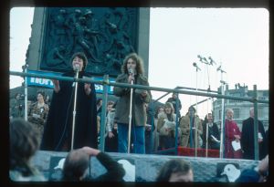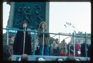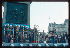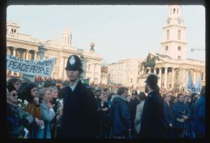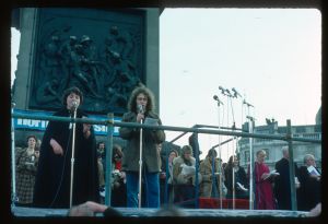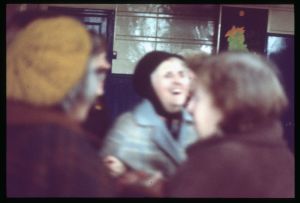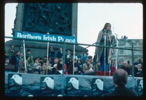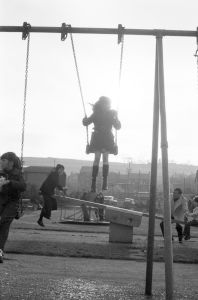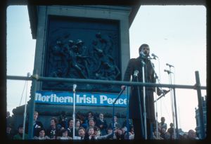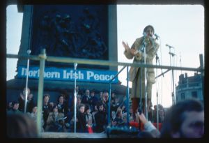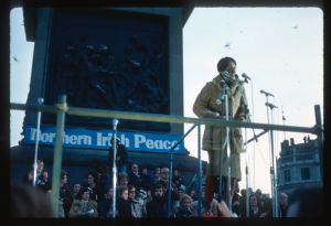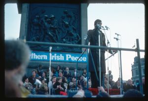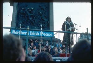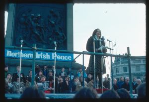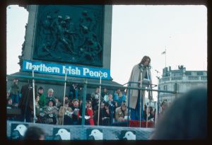 Woods came to Northern Ireland in 1976-77 on the basis of a Kodak one-year bursary. His brief was to document everyday life during the Troubles focussing in particular on those involved in encouraging reconciliation and the efforts being made to address social problems. The photographs he took record peace rallies and demonstrations, women’s groups, youth activities and community life.