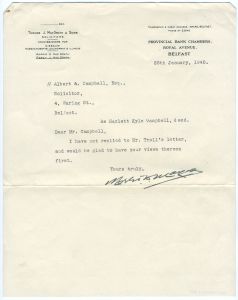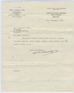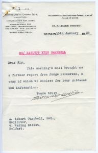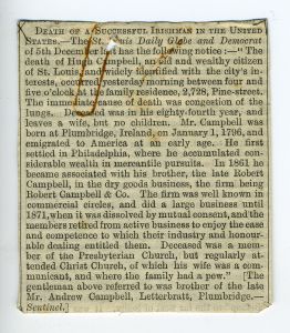 When 18 year old Robert Campbell emigrated to the United States in 1822, he never dreamed he would become an admired mountain man and fur trapper, a respected Indian blood brother, own steamships and gold mines, befriend American Presidents and accumulate a huge fortune. The papers of his relative, solicitor A. Albert Campbell (born Plumbridge 1865, died Belfast 1958), provide a fascinating insight into pioneer life on the American frontier, nineteenth-century life back home in Ireland and their unfolding family history.