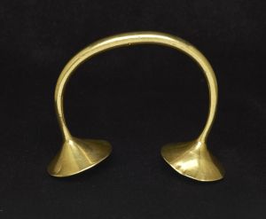 The first metal objects appear in Ireland around 2500 BC as the knowledge of metalworking spread across Europe. They were made from copper, but this soon changed to bronze – a harder metal made of copper and tin. Bronze replaced stone to make spears, axes, daggers and swords. Other types of objects include the large cauldrons and buckets used at feasts for cooking and holding drinks. Musical horns are among the more unusual items found from this period. Gold was fashionable for making jewellery of the highest quality used as bracelets, neck-rings and tiny lockets known as ‘bulla’.