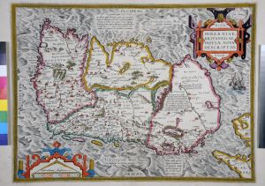 HIBERNIAE / BRITANNICAE / INSVLAE, NOVA / DESCRIPTIO. ERYN. IRLANDT.
