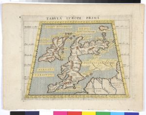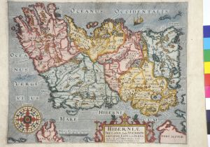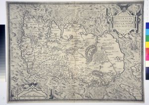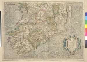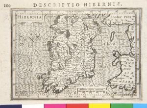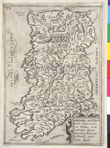 HIBERNIA ANTIQVA / IERNA Orpheo & Aust. / IRISHDiodoro Siculo. / IUUERNA Iuuenali. / YUERDON Britanni. / IRELAND