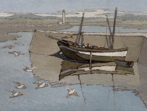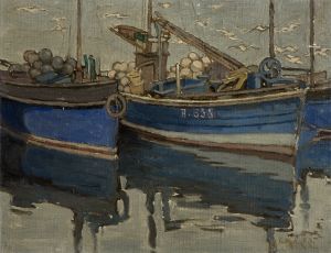 painting, oil Painting Untitled, Fishing Boat In Harbour, by Georgina Moutray Kyle