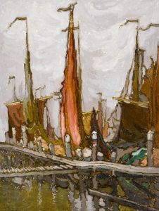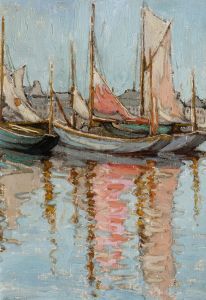 painting, oil Painting "The Pink Sails at Honfleur", by Georgina Moutray Kyle