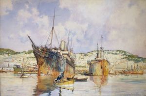 Ships in a Mediterranean Harbour, probably Algiers (1918)Drawing