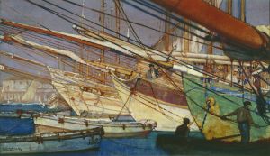 Ships in a Mediterranean Harbour, probably Algiers (1918)