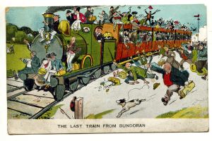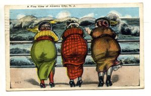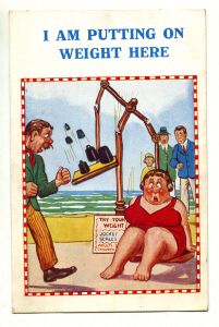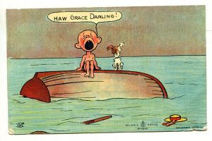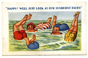 '"Happy? Well just look at our sunburnt faces!"'Postcard