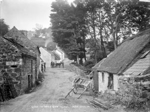 - Positive plate of general view of street with cart and pony and trap in middle distance.