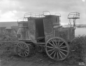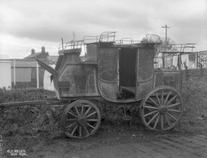 - Stage coach in Ballymoney Station yard; old Ballymoney - Ballycastle Royal Mail stage coach used before railway was made. Dated November 1928.