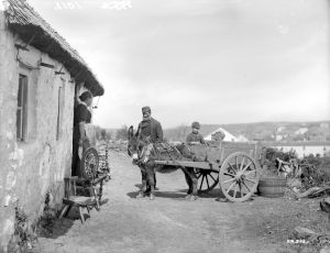 - Hugh McGahie and his donkey and cart outside a thatched house Y.W.01.27.13.