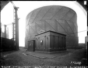- subject : Belfast Corporation Gas Department. Main gas tank. Belfast Textile Association group in front of gasometer. (Image from Y3218 superimposed on Y3216.)