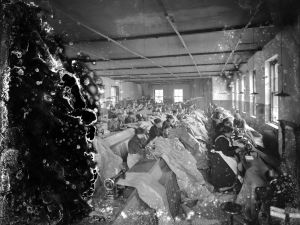 - Photograph, Dundee / McKinney glass plate negative. Subject : Robert Welch: Stitchers at work